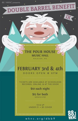 WKNC 88.1 FM will be hosting its 9th Double Barrel Benefit at The Pour House Music Hall in downtown Raleigh Friday, Feb. 3 and Saturday Feb. 4. Double Barrel Benefit is WKNC’s largest fund-raiser of the year, presenting four bands each night of its two-night concert series. The Pour House will be opening as an 18+ venue for this special event.